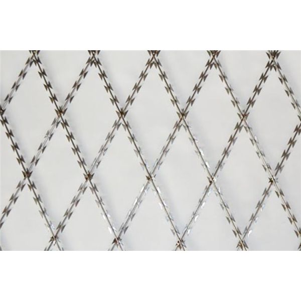 Welded Razor Wire Diamond Mesh is a kind of galvanized steel wire tape, with two-sided blades with symmetrical arrangement. The galvanized steel wire diameter is of 2.5 millimeters, reinforced to 5mm in diameter. The most important feature of razor concertina wire is that its construction is able to maintain its structure.
